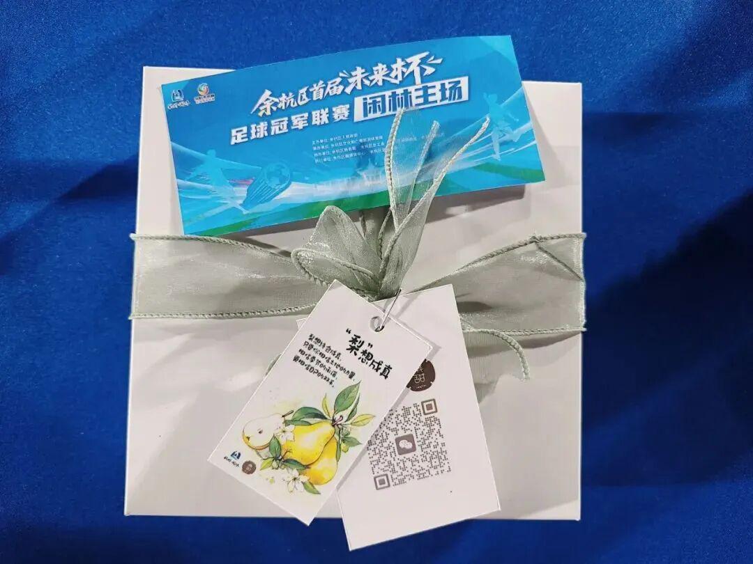 余杭街道与瓶窑镇对阵的赛场上,焦点不只属于进球。一份寓意“出类‘八’萃”的禹上稻乡礼盒,以文化之名,闪耀赛场。