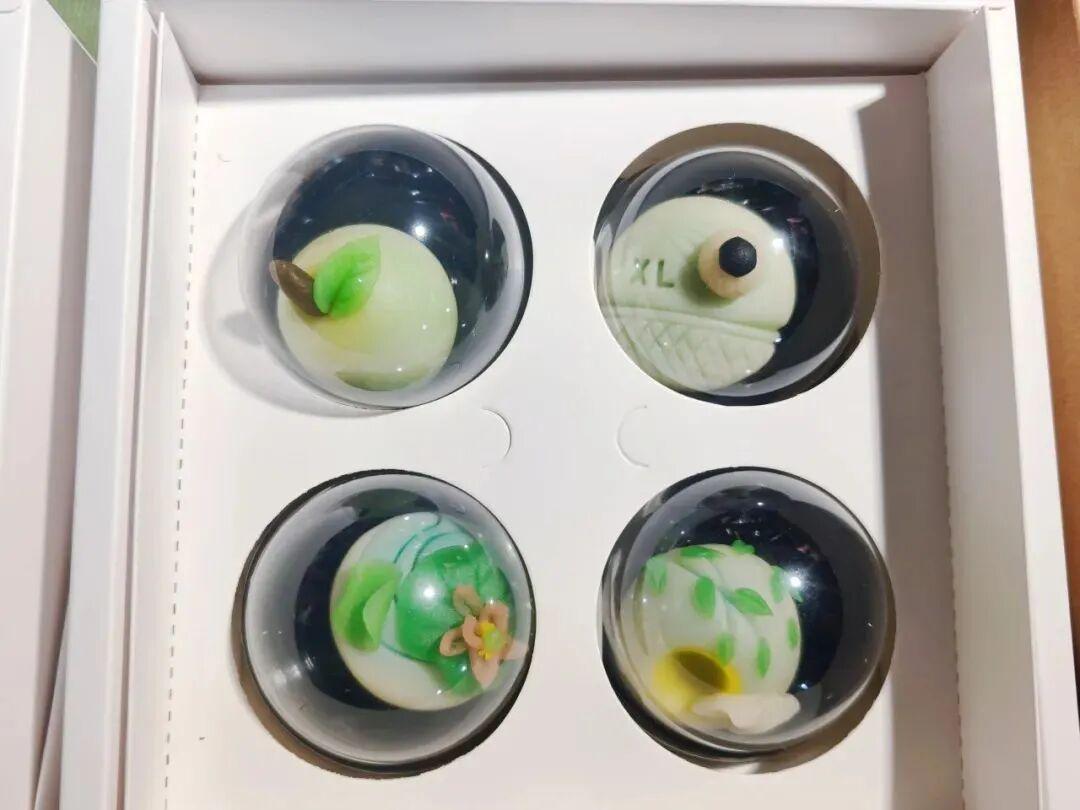 这款特别定制的非遗茶果子出自桑甜非遗艺术茶点,品牌主理人胡剑菠老师毕业于中国美术学院,美学的概念被融入进茶点的制作中,推出一款款绝美的茶点。