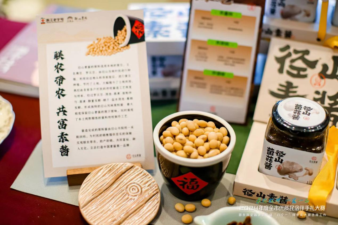 径山镇送上的伴手礼满载径山特色,内含抹茶瓶盖、径山素酱、福临门冰箱贴、消费优惠券……千年径山,以茶会友,赠的是礼,传的是情!