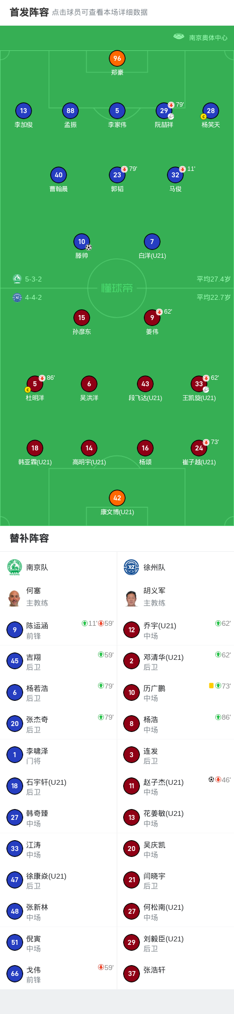 b体育app-南京1-1徐州,滕帅破门,赵子杰建功